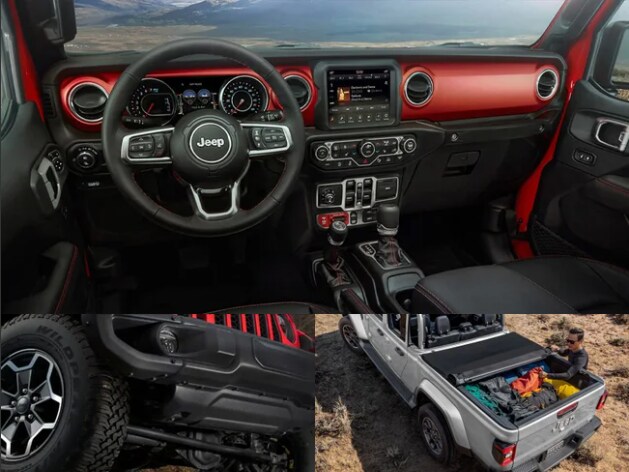 *Above-stated prices do not include tax, tag and $698 dealer administrative/documentary fee additional. May not represent the actual vehicle. (Options, colors, trim and body style may vary.) **2023 Jeep Gladiator EcoDiesel 4WD according to fueleconomy.gov. ***Based on exclusive fold-down windshield, removable doors, removable soft-top and removable hard-top. Class based on Ward's Small Pickup segmentation. Competitor information based upon available manufacturer specifications. +Always check entire surroundings visually before proceeding. ++Always check visually for vehicles prior to changing lanes.