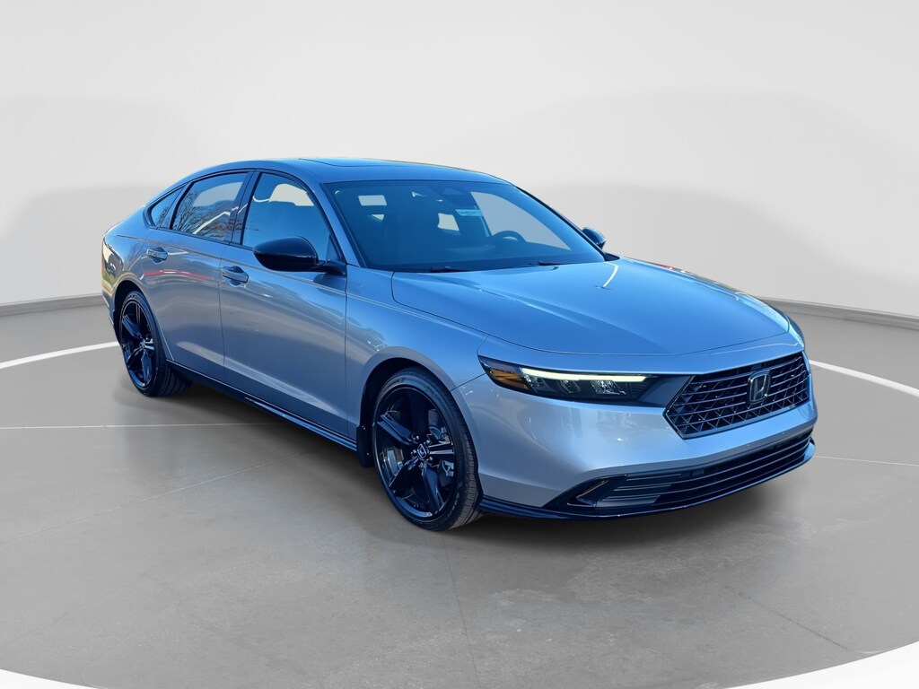 Clean CARFAX. Certified. Solar Silver Metallic 2025 Honda Accord Hybrid Sport-L FWD eCVT 2.0L I4 DOHC 16V