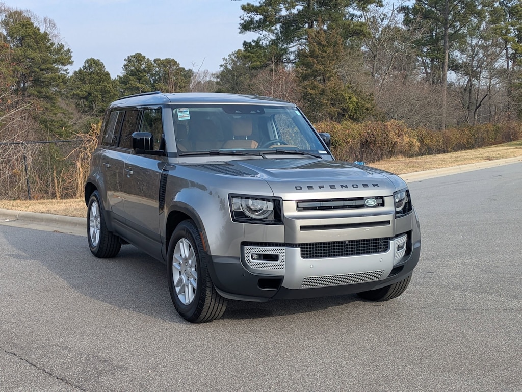 Clean CARFAX. Certified. Silicon Silver Premium Metallic 2024 LAND ROVER Defender 110 S 4WD 8-Speed Automatic 3.0L I6 BACK UP CAMERA, LEATHER, HEATED SEATS, PANORAMIC SUNROOF, BLIND SPOT MONITOR, 4-WHEEL DRIVE, SMART KEY W PUSH BUTTON START, PRE-COLLISION SYSTEM W PEDESTRIAN DETECTION, DYNAMIC RADAR CRUISE CONTROL, LANE DEPARTURE ALERT W STEERING ASSIST, APPLE CARPLAY & ANDROID AUTO, NO ACCIDENTS, MUST SEE!, 12-Way Heated Electric Memory Front Seats, ABS brakes, Adaptive Dynamics, Air Conditioning, Air Suspension Pack, Apple CarPlay & Android Auto, Auto High-beam Headlights, Auto tilt-away steering wheel, Auto-dimming Rear-View mirror, Automatic temperature control, Compass, Electronic Air Suspension, Exterior Parking Camera Rear, Front dual zone A/C, Fully automatic headlights, Gloss Black Front Grille, Grained Leather Seat Trim, Heated front seats, Heated steering wheel, Leather steering wheel, Memory seat, Navigation system: Connected Navigation PIVI Pro, Power moonroof, Power passenger seat, Radio: 400W 11 Speaker Meridian Sound System, Rain sensing wipers, Split folding rear seat, Steering wheel memory, Steering wheel mounted audio controls, Traction control, Wheels: 19" Gloss Sparkle Silver Style 6010.