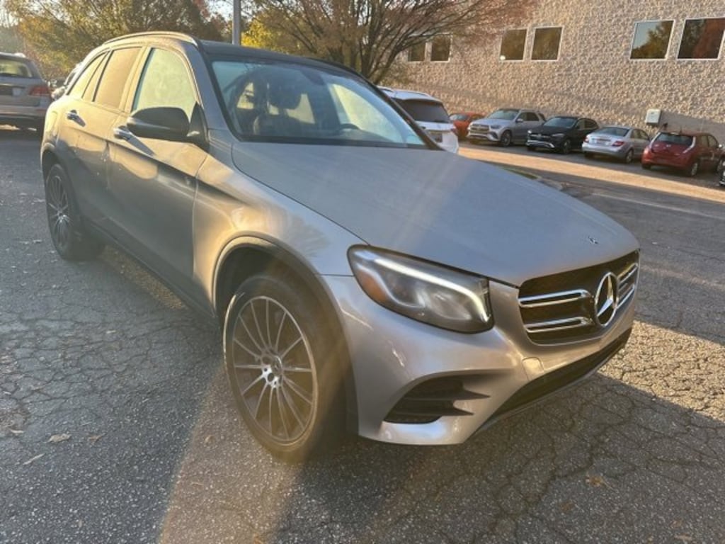 Certified. Mojave Silver Metallic 2019 Mercedes-Benz GLC GLC 300 I4 4-Way Lumbar Support, 4-Wheel Disc Brakes, 6 Speakers, ABS brakes, Air Conditioning, AM/FM radio, AMG® Line, AMG® Line Bodystyling, AMG® Line Exterior, AMG® Line Floor Mats, Anti-whiplash front head restraints, Audio 20 w/Single CD, Auto tilt-away steering wheel, Auto-dimming door mirrors, Auto-dimming Rear-View mirror, Automatic temperature control, Black Roof Rails, Blind Spot Assist, Bumpers: body-color, CD player, Child-Seat-Sensing Airbag, Driver door bin, Driver vanity mirror, Dual front impact airbags, Dual front side impact airbags, Electrically Adjustable Passenger Seat, Emergency communication system: mbrace, Four wheel independent suspension, Front anti-roll bar, Front Bucket Seats, Front Center Armrest, Front dual zone A/C, Front reading lights, Garage door transmitter: Homelink, Genuine wood dashboard insert, Genuine wood door panel insert, Heated door mirrors, Heated Front Bucket Seats, Heated front seats, Illuminated entry, KEYLESS GO®, Knee airbag, Leather steering wheel, LED Logo Projectors, Low tire pressure warning, MB-Tex Upholstery, Memory seat, Night Package, Night Package (P55), Occupant sensing airbag, Outside temperature display, Overhead airbag, Overhead console, Panorama Sunroof, Passenger door bin, Passenger vanity mirror, Power door mirrors, Power driver seat, Power Driver Seat & Steering Column w/Memory, Power Liftgate, Power passenger seat, Power steering, Power windows, Premium audio system: COMAND®, Premium Package, Radio data system, Rear anti-roll bar, Rear reading lights, Rear seat center armrest, Rear window defroster, Remote keyless entry, Roof rack: rails only, SiriusXM Satellite Radio, Speed control, Speed-sensing steering, Split folding rear seat, Steering wheel memory, Steering wheel mounted audio controls, Tachometer, Telescoping steering wheel, Tilt steering wheel, Traction control, Trip computer, Turn signal indicator mirrors, Weather band radio, Wheels: 20" AMG® Multispoke w/Black Accents.