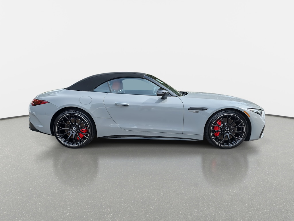Certified. Gray 2024 Mercedes-Benz SL-Class SL 55 AMG® 4MATIC® 4.0L V8 Red Pepper/Black w/Nappa Leather Upholstery, 11 Speakers, 4-Wheel Disc Brakes, ABS brakes, Adaptive suspension, Air Conditioning, Alloy wheels, AMG® Night Package Plus, Android Auto®, Apple CarPlay®, Apple CarPlay®/Android Auto®, Auto High-beam Headlights, Auto tilt-away steering wheel, Auto-dimming door mirrors, Auto-dimming Rear-View mirror, Automatic temperature control, Black Headliner, Black SoftTop, Brake assist, Bumpers: body-color, Burmester® Surround Sound System, Child-Seat-Sensing Airbag, Convertible roof lining, Convertible roof wind blocker, Delay-off headlights, Driver door bin, Driver vanity mirror, Dual front impact airbags, Dual front side impact airbags, Electronic Stability Control, Emergency communication system, Exterior Parking Camera Rear, Four wheel independent suspension, Front anti-roll bar, Front Bucket Seats, Front Center Armrest, Front dual zone A/C, Front reading lights, Garage door transmitter: HomeLink, Glass rear window, Heated front seats, Heated steering wheel, High Performance Tires, Illuminated entry, Integrated roll-over protection, Knee airbag, Leather steering wheel, Low tire pressure warning, Memory seat, Nappa Leather Upholstery, Occupant sensing airbag, Outside temperature display, Overhead airbag, Overhead console, Panic alarm, Passenger door bin, Passenger vanity mirror, Power adjustable front head restraints, Power convertible roof, Power door mirrors, Power driver seat, Power Front Seats w/3-Position Memory, Power passenger seat, Power steering, Power windows, Radio data system, Radio: MBUX Infotainment & Navigation System, Rain sensing wipers, Rear anti-roll bar, Rear fog lights, Rear window defroster, Remote keyless entry, Security system, SiriusXM Radio, Smartphone Integration, Speed control, Speed-sensing steering, Spoiler, Sport steering wheel, Steering wheel memory, Steering wheel mounted audio controls, Tachometer, Telescoping steering wheel, Tilt steering wheel, Touring Trim Line, Traction control, Trip computer, Turn signal indicator mirrors, Variably intermittent wipers, Ventilated front seats, Wheels: 21" AMG® 10-Spoke Y-Design, Black.