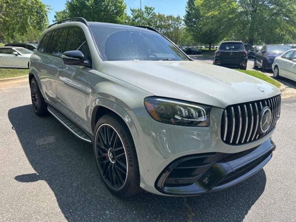 New Price! Certified. MANUFAKTUR Alpine Grey 2025 Mercedes-Benz GLS GLS 63 AMG® 4MATIC® 4.0L V8 13 Speakers, 3rd row seats: split-bench, 4-Wheel Disc Brakes, 7-Seat Configuration, ABS brakes, Active Multi-Contour Power Front Seats, Adaptive suspension, Air Conditioning, AM/FM radio: SiriusXM, AMG® Night Package, Apple CarPlay®/Android Auto®, Auto High-beam Headlights, Auto tilt-away steering wheel, Auto-dimming door mirrors, Auto-dimming Rear-View mirror, Auto-leveling suspension, Automatic temperature control, Brake assist, Bumpers: body-color, Burmester® Surround Sound System, Child-Seat-Sensing Airbag, Compass, Delay-off headlights, Driver door bin, Driver vanity mirror, Dual front impact airbags, Dual front side impact airbags, Electronic Stability Control, Emergency communication system: eCall Emergency System, Exterior Parking Camera Rear, Four wheel independent suspension, Front anti-roll bar, Front Bucket Seats, Front Center Armrest w/Storage, Front dual zone A/C, Front reading lights, Fully automatic headlights, Garage door transmitter: HomeLink, Genuine wood console insert, Genuine wood dashboard insert, Genuine wood door panel insert, Head restraints memory, Heads-Up Display, Heated door mirrors, Heated front seats, Heated rear seats, Heated steering wheel, Illuminated entry, Illuminated running boards, Knee airbag, Low tire pressure warning, Memory seat, Occupant sensing airbag, Outside temperature display, Overhead airbag, Overhead console, Panic alarm, Passenger door bin, Passenger vanity mirror, Power adjustable front head restraints, Power door mirrors, Power driver seat, Power Liftgate, Power moonroof: Panorama, Power passenger seat, Power steering, Power windows, Premium audio system: MBUX, Radio: MBUX Multimedia System, Rain sensing wipers, Rear air conditioning, Rear anti-roll bar, Rear dual zone A/C, Rear fog lights, Rear reading lights, Rear seat center armrest, Rear window defroster, Rear window wiper, Reclining 3rd row seat, Remote keyless entry, Security system, Speed-sensing steering, Speed-Sensitive Wipers, Split folding rear seat, Spoiler, Sport steering wheel, Steering wheel memory, Steering wheel mounted audio controls, Tachometer, Telescoping steering wheel, Tilt steering wheel, Traction control, Trip computer, Turn signal indicator mirrors, Variably intermittent wipers, Ventilated front seats, Weather band radio, Wheels: 23" AMG® Monoblock Forged Matte Black.