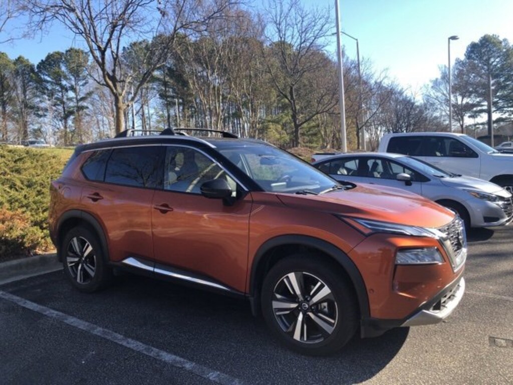 Certified. Sunset Drift Chromaflair/Super Black 2021 Nissan Rogue Platinum AWD CVT with Xtronic 2.5L I4 DOHC 16V Bought Here, Serviced Here, AWD.