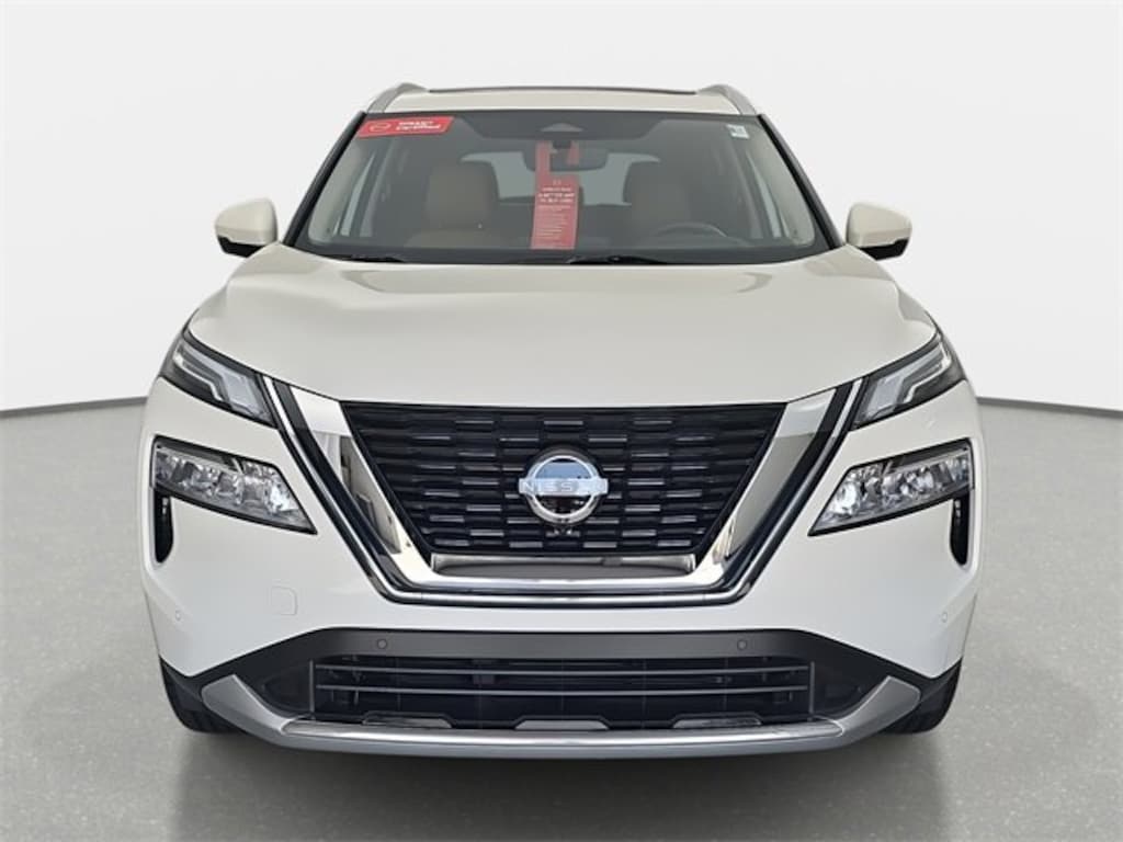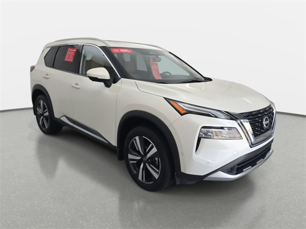 Certified. Pearl White Tricoat 2023 Nissan Rogue Platinum FWD CVT with Xtronic 1.5L I3 Turbocharged DOHC 12V LEV3-ULEV50 201hp Heads-Up Display, Platinum Premium Package, Rear Heated Seats, Tri-Zone HVAC.