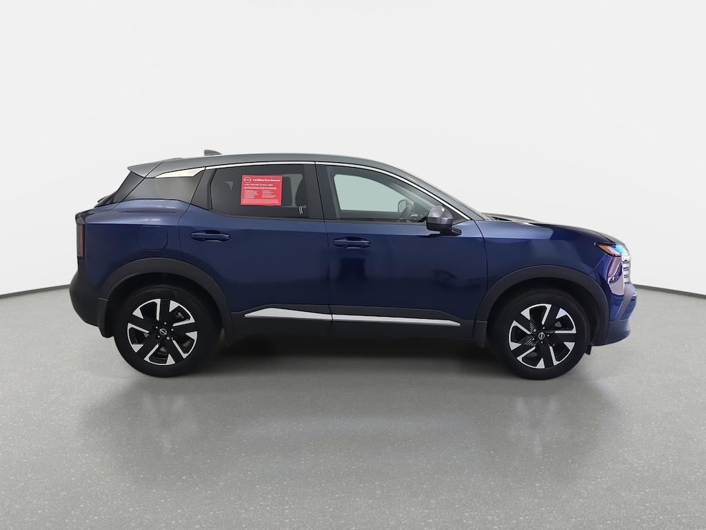 Certified. Deep Blue Pearl/Gun Metallic 2025 Nissan Kicks SV AWD CVT with Xtronic 2.0L DOHC Bought Here, Serviced Here.