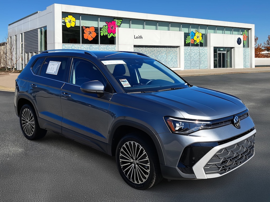 Platinum Gray Metallic 2025 Volkswagen Taos 1.5T SE FWD 8-Speed Automatic with Tiptronic 1.5L I4 Turbocharged DOHC 16V LEV3-SULEV30 174hp AM/FM radio: SiriusXM with 360L, Automatic temperature control, Brake assist, Cloudtex and Cloth Seating Surfaces, Electronic Stability Control, Exterior Parking Camera Rear, Front dual zone A/C, Heated Front Bucket Seats, Power driver seat, Radio: MIB3 Composition Media AM/FM/HD, Rain sensing wipers, Rear window wiper, Remote keyless entry, Speed-sensing steering, Split folding rear seat, Steering wheel mounted audio controls, Traction control, Wheels: 18" 2-Tone Machined Alloy.