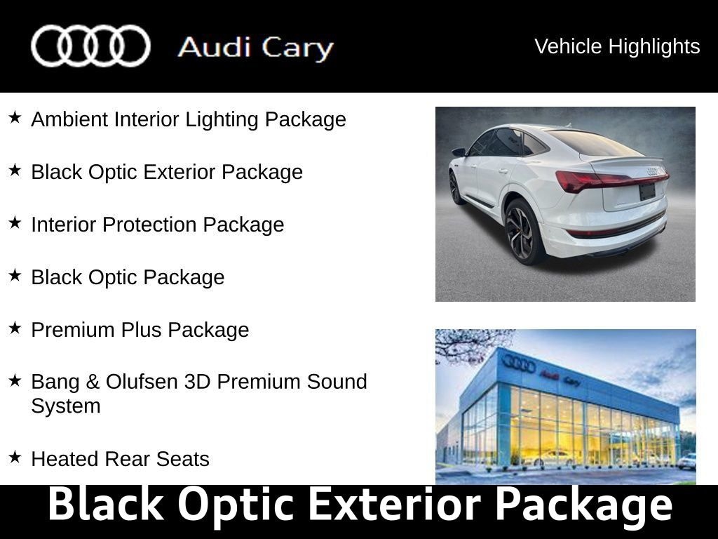 Glacier White 2022 Audi e-tron Sportback S line Premium Plus quattro Single-Speed Automatic Electric Motor quattro 2nd Charge Port (AC Passenger Side), Adaptive Cruise Assist w/Lane Guidance, All Weather Floor Mats, Ambient Interior Lighting Package, Audi Phone Box w/Wireless Charging, Bang & Olufsen 3D Premium Sound System, Black Optic Exterior Package, Black Optic Package, Dynamic Orange Brake Calipers, Heated Rear Seats, Interior Protection Package, Matrix-Design LED Headlights, Premium Plus Package, Top View Camera System, Traffic Sign Recognition, Ventilated Front Seats, Wheels: 21" 10-Spoke Bi-Color Design.