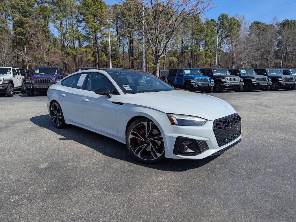 White 2023 Audi S5 Sportback Premium Plus quattro quattro 8-Speed Automatic with Tiptronic 3.0L TFSI ONE-OWNER, Auto High-beam Headlights, Automatic temperature control, Exterior Parking Camera Rear, Garage door transmitter: HomeLink, Heated Front S Sport Seats, Leather/Dinamica Seating Surfaces, Outside temperature display, Power Liftgate, Power moonroof, Rear air conditioning, Remote keyless entry, Wheels: 19" 5-Double-Arm Design Bi-Color Finish.