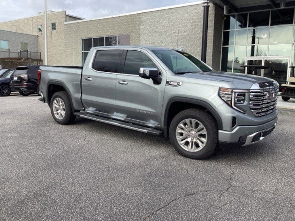 CARFAX One-Owner. Sterling Metallic 2025 GMC Sierra 1500 Denali 10-Speed Automatic 3.0L I6 10-Speed Automatic, 4WD, Jet Black w/Leather-Appointed Seat Trim, Power Sunroof, Premium Bose 7-Speaker Sound System, Wheels: 20" x 9" Multi-Dimensional Polished Alum.