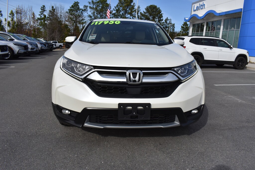 Clean CARFAX. CARFAX One-Owner. Priced below KBB Fair Purchase Price! Certified. White Diamond Pearl 2017 Honda CR-V EX-L AWD CVT 1.5L I4 DOHC 16V 18" Alloy Wheels, 4-Wheel Disc Brakes, 5.64 Axle Ratio, 8 Speakers, ABS brakes, Air Conditioning, Alloy wheels, AM/FM radio: SiriusXM, Apple CarPlay/Android Auto, Auto High-beam Headlights, Auto-dimming Rear-View mirror, Automatic temperature control, Blind Spot Information (BSI) System warning, Brake assist, Bumpers: body-color, Compass, Delay-off headlights, Dual front impact airbags, Dual front side impact airbags, Electronic Stability Control, Exterior Parking Camera Rear, Four wheel independent suspension, Front anti-roll bar, Front dual zone A/C, Front fog lights, Fully automatic headlights, Garage door transmitter: HomeLink, Heated door mirrors, Heated Front Bucket Seats, Heated front seats, Illuminated entry, Leather Seat Trim, Leather Shift Knob, Low tire pressure warning, Memory seat, Occupant sensing airbag, Outside temperature display, Overhead airbag, Overhead console, Panic alarm, Power door mirrors, Power driver seat, Power Liftgate, Power moonroof, Power passenger seat, Power steering, Power windows, Radio data system, Radio: AM/FM/HD/SiriusXM Audio System, Rear anti-roll bar, Rear window defroster, Rear window wiper, Remote keyless entry, Security system, Speed control, Speed-sensing steering, Speed-Sensitive Wipers, Split folding rear seat, Spoiler, Steering wheel mounted audio controls, Tachometer, Telescoping steering wheel, Tilt steering wheel, Traction control, Trip computer, Turn signal indicator mirrors, Variably intermittent wipers.