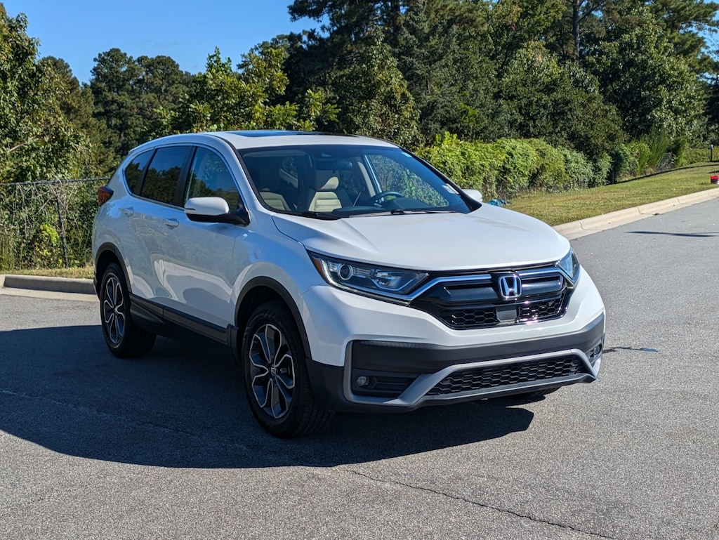 Clean CARFAX. Platinum White Pearl 2021 Honda CR-V EX AWD CVT 1.5L I4 DOHC 16V BACK UP CAMERA, HEATED SEATS, SUNROOF, BLIND SPOT MONITOR, ALL WHEEL DRIVE, APPLE CARPLAY & ANDROID AUTO, NO ACCIDENTS, MUST SEE!, AWD, 18" Alloy Wheels, ABS brakes, Adaptive Cruise Control: Adaptive Cruise Control (ACC) with Low-Speed Follow, Apple CarPlay/Android Auto, Auto High-beam Headlights, Automatic temperature control, Blind Spot Information (BSI) System warning, Compass, Exterior Parking Camera Rear, Forward collision: Collision Mitigation Braking System (CMBS) + FCW mitigation, Four wheel independent suspension, Front dual zone A/C, Heated front seats, Illuminated entry, Power driver seat, Power moonroof, Radio: 180-Watt AM/FM/HD/SiriusXM Audio System, Split folding rear seat, Steering wheel mounted audio controls, Traction control, Turn signal indicator mirrors.