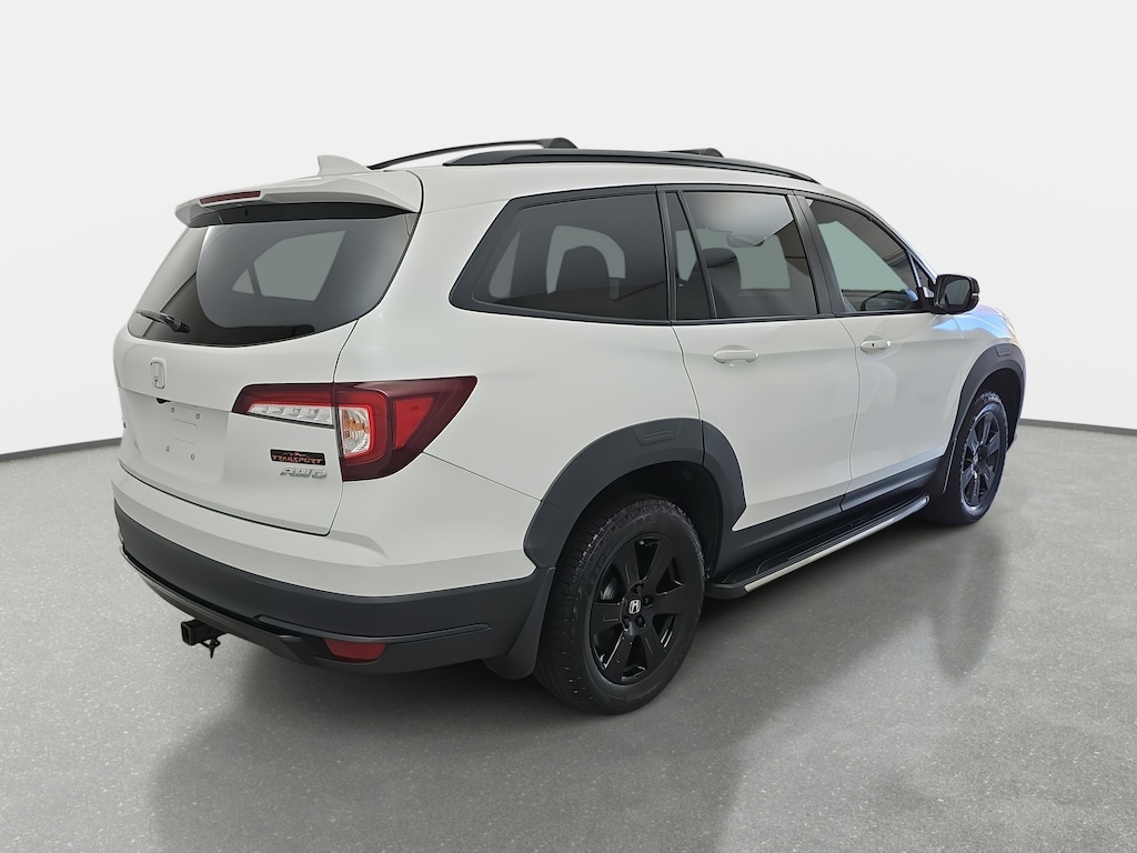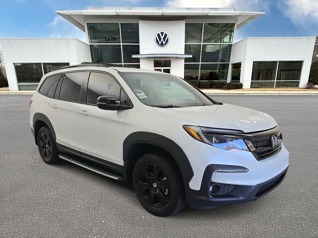 Platinum White Pearl 2022 Honda Pilot TrailSport AWD 9-Speed Automatic 3.5L V6 24V SOHC i-VTEC AWD, 3rd row seats: split-bench, Apple CarPlay/Android Auto, Auto High-beam Headlights, Blind Spot Information (BSI) System warning, Exterior Parking Camera Rear, Forward collision: Collision Mitigation Braking System (CMBS) + FCW mitigation, Fully automatic headlights, Garage door transmitter: HomeLink, Heated door mirrors, Heated Front Bucket Seats, Illuminated entry, Lane departure: Lane Keeping Assist System (LKAS) active, Power driver seat, Radio: 215-Watt Audio System, Reclining 3rd row seat, Wheels: 18" Exclusive Gloss Black Alloy.