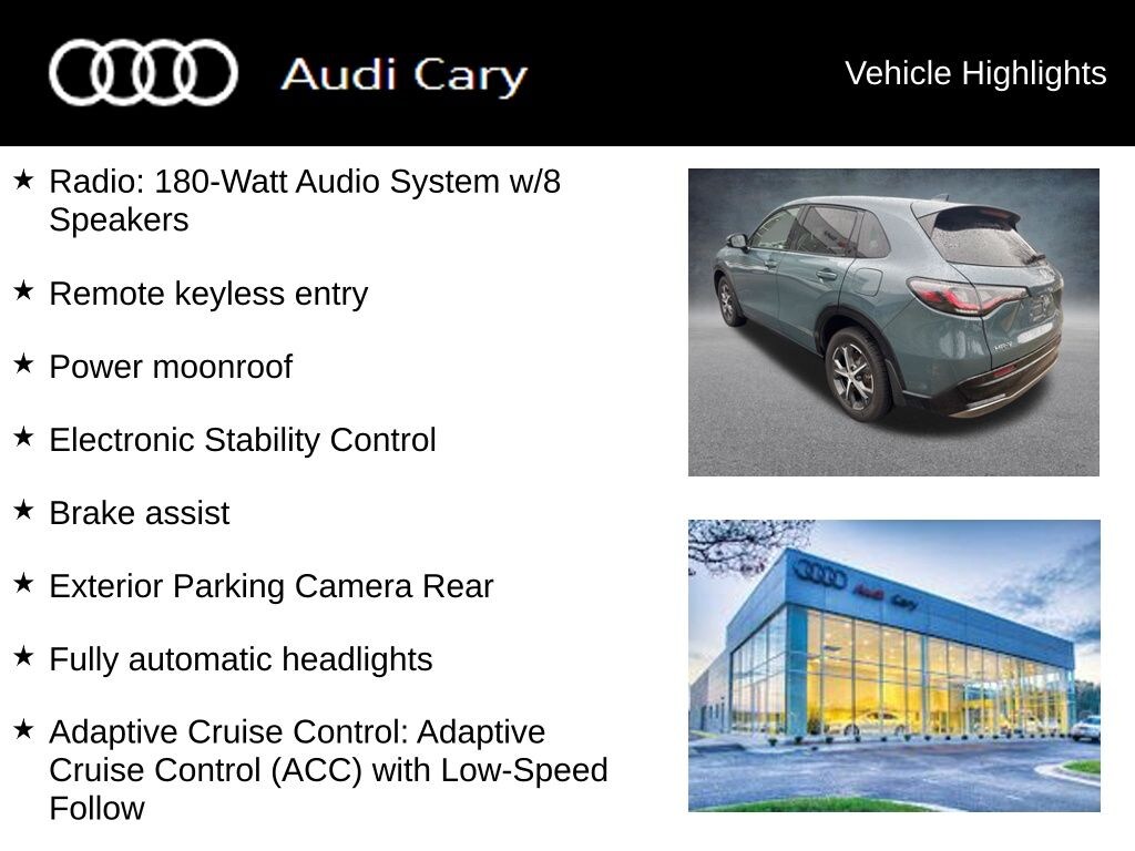 Nordic Forest Pearl 2024 Honda HR-V EX-L CVT 2.0L I4 DOHC 16V i-VTEC AWD CARFAX One-Owner. Adaptive Cruise Control: Adaptive Cruise Control (ACC) with Low-Speed Follow, Apple CarPlay/Android Auto, Brake assist, Electronic Stability Control, Exterior Parking Camera Rear, Fully automatic headlights, Heated front seats, Leather-Trimmed Seats, Power moonroof, Radio: 180-Watt Audio System w/8 Speakers, Remote keyless entry.