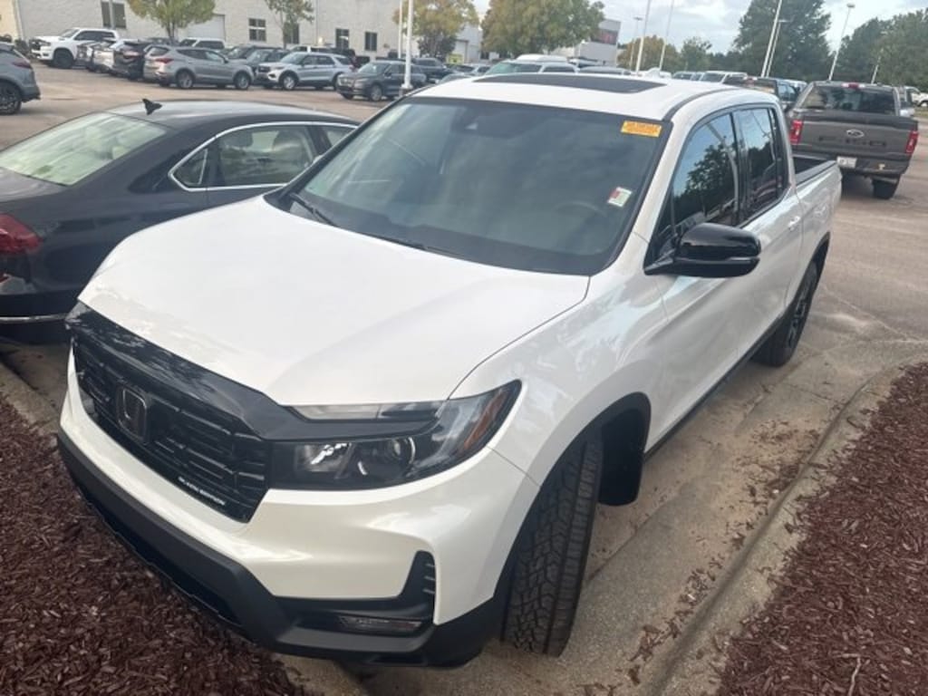 Clean CARFAX. CARFAX One-Owner. Platinum White Pearl 2025 Honda Ridgeline Black Edition AWD 9-Speed Automatic 3.5L V6 SOHC i-VTEC 24V LOCAL TRADE, LOW MILEAGE, ONE-OWNER, Black w/Leather Seat Trim.