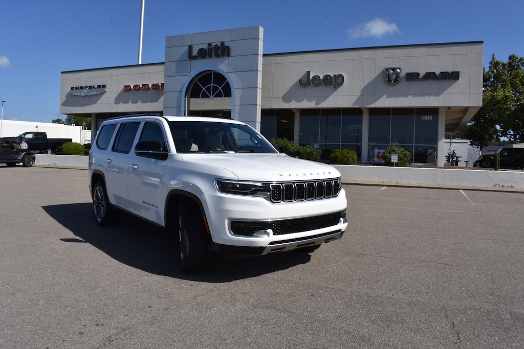CARFAX One-Owner. Bright White Clearcoat 2025 Jeep Wagoneer Series III 4WD 8-Speed Automatic 3.0L I6 10 Speakers, 118 MPH Maximum Speed Calibration, 19 Speaker McIntosh Audio System, 3 Panel Sunroof, 3.55 Rear Axle Ratio, 3rd row seats: bench, 4-Wheel Disc Brakes, ABS brakes, Adjustable Roof Rail Crossbars, Air Conditioning, Alloy wheels, AM/FM radio: SiriusXM with 360L, Anti-whiplash front head restraints, Apple CarPlay/Android Auto, Audio memory, Auto High-beam Headlights, Auto-dimming door mirrors, Auto-dimming Rear-View mirror, Auto-leveling suspension, Automatic temperature control, Brake assist, Bumpers: body-color, Cargo Cover, Compass, Delay-off headlights, Dual front impact airbags, Dual front side impact airbags, Electronic Stability Control, Emergency communication system: Jeep Connect, Four wheel independent suspension, Front anti-roll bar, Front Bucket Seats, Front dual zone A/C, Front fog lights, Fully automatic headlights, Garage door transmitter, Genuine wood console insert, Genuine wood dashboard insert, Genuine wood door panel insert, Heads-Up Display, Heated door mirrors, Heated front seats, Heated rear seats, Heated steering wheel, Illuminated entry, Knee airbag, Leather Trimmed Bucket Seats, Low tire pressure warning, Luxury Front & Rear Floor Mats, Memory seat, Navigation System, Normal Duty Suspension, Occupant sensing airbag, Outside temperature display, Overhead airbag, Panic alarm, ParkView Rear Back-Up Camera, Passenger seat mounted armrest, Power adjustable front head restraints, Power Deployable Running Boards, Power door mirrors, Power driver seat, Power Liftgate, Power passenger seat, Power steering, Power windows, Premium Group I, Quick Order Package 25N, Radio data system, Radio: Uconnect 5 Nav w/10.1" Display, Rain sensing wipers, Rear air conditioning, Rear anti-roll bar, Rear dual zone A/C, Rear window defroster, Rear window wiper, Reclining 3rd row seat, Remote keyless entry, Reversible Carpet/Vinyl Cargo Mat, Security system, Speed control, Speed-sensing steering, Speed-Sensitive Wipers, Split folding rear seat, Steering wheel memory, Steering wheel mounted audio controls, Tachometer, Telescoping steering wheel, Tilt steering wheel, Traction control, Trip computer, Turn signal indicator mirrors, Variably intermittent wipers, Ventilated front seats, Voltmeter, Wheels: 20" x 9.0" Machine Face Painted Aluminum, Wheels: 22" x 9.0" Premium 3 Aluminum.