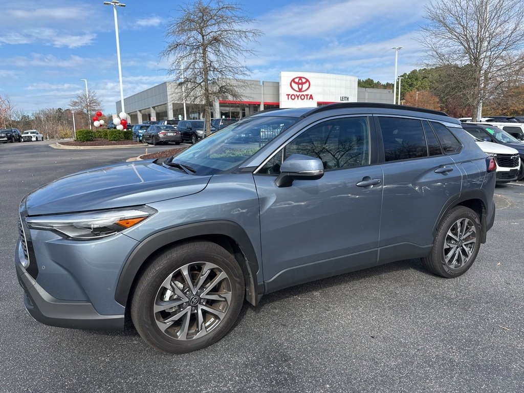 CARFAX One-Owner. Celestite 2023 Toyota Corolla Cross XLE FWD CVT 2.0L I4 PDI DOHC 16V LEV3-SULEV30 169hp LOCAL TRADE IN, BACK UP CAMERA, LEATHER, HEATED SEATS, SUNROOF, SMART KEY W PUSH BUTTON START, PRE-COLLISION SYSTEM W PEDESTRIAN DETECTION, FULL-SPEED RANGE DYNAMIC RADAR CRUISE CONTROL, LANE DEPARTURE ALERT W STEERING ASSIST, BLIND SPOT MONITOR W REAR CROSS-TRAFFIC ALERT, APPLE CARPLAY & ANDROID AUTO, 1-OWNER, NO ACCIDENTS, MUST SEE!, ABS brakes, Air Conditioning, Auto High-beam Headlights, Convenience Package, Electronic Stability Control, Exterior Parking Camera Rear, Front dual zone A/C, Front fog lights, Front wheel independent suspension, Heated Front Bucket Seats, IMB & Alarm Anti-Theft System, Leather Shift Knob, Leather steering wheel, PBD Auto & Easy Closer Door, Power driver seat, Power steering, Power windows, Radio: Audio Plus w/9 JBL Speakers, Rear window defroster, Softex Synthetic Leather Seat Trim, Steering wheel mounted audio controls, Telescoping steering wheel, Tilt & Slide Moonroof, Traction control, Turn signal indicator mirrors, Wheels: 18 Alloy w/Black-Painted Machine-Finish.