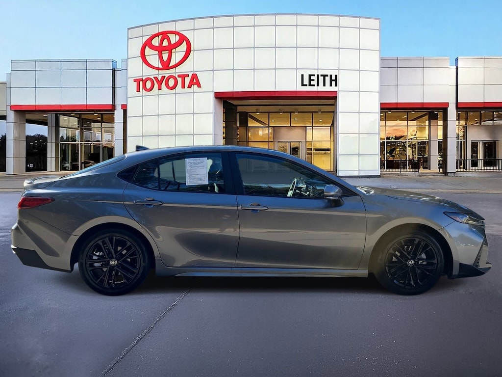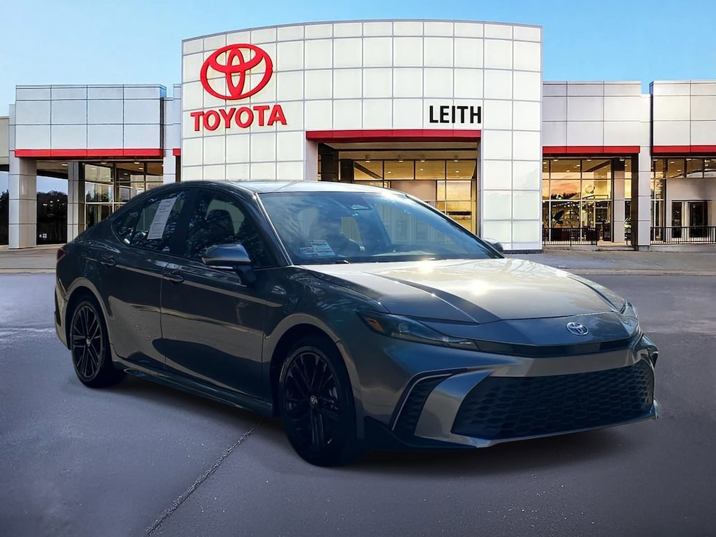 Priced below KBB Fair Purchase Price! Clean CARFAX. Heavy Metal 2025 Toyota Camry SE FWD eCVT 2.5L 4-Cylinder 16V DOHC Clean Carfax 1 Owner/No Accident Vehicle, OWNED BY DEALER, BACK UP CAMERA, LEATHER, SMART KEY W PUSH BUTTON START, PRE-COLLISION SYSTEM W PEDESTRIAN DETECTION, FULL-SPEED RANGE DYNAMIC RADAR CRUISE CONTROL, LANE DEPARTURE ALERT W STEERING ASSIST, BLIND SPOT MONITOR W REAR CROSS-TRAFFIC ALERT, APPLE CARPLAY & ANDROID AUTO, 1-OWNER, NO ACCIDENTS, MUST SEE!, 2.5L 4-Cylinder 16V DOHC, Black w/SofTex & Fabric Seat Trim, ABS brakes, Air Conditioning, Apple CarPlay/Android Auto, Auto High-beam Headlights, Auto-Dimming Rearview Mirror w/HomeLink, Convenience Package, Electronic Stability Control, Exterior Parking Camera Rear, Four wheel independent suspension, Front Bucket Seats, Front dual zone A/C, Fully automatic headlights, Leather Shift Knob, Leather steering wheel, Passenger vanity mirror, Power driver seat, Power steering, Power windows, Radio: Toyota Audio Multimedia w/8 Touchscreen, Smart Key System, SofTex & Fabric Seat Trim, Steering wheel mounted audio controls, Telescoping steering wheel, Traction control, Turn signal indicator mirrors, Wheels: 18 Black-Finished Alloy.