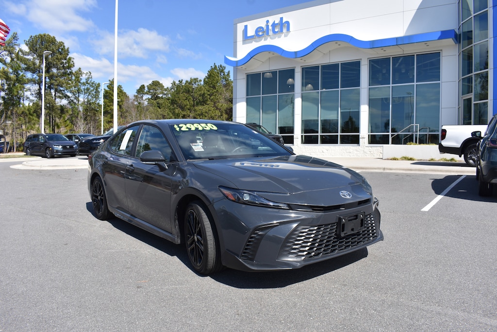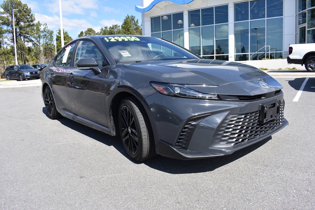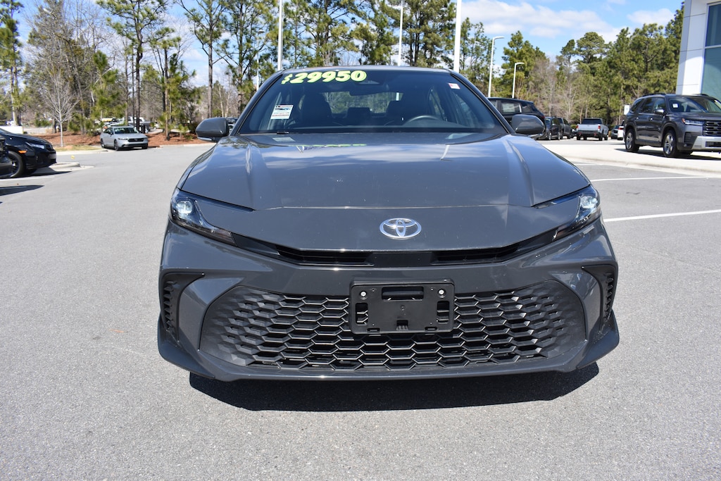 Clean CARFAX. CARFAX One-Owner. Underground 2025 Toyota Camry SE FWD eCVT 2.5L 4-Cylinder 16V DOHC 4-Wheel Disc Brakes, 6 Speakers, ABS brakes, Active Cruise Control, Air Conditioning, Alloy wheels, AM/FM radio: SiriusXM, Apple CarPlay/Android Auto, Auto High-beam Headlights, Automatic temperature control, Brake assist, Bumpers: body-color, Delay-off headlights, Dual front impact airbags, Dual front side impact airbags, Electronic Stability Control, Emergency communication system: Safety Connect (up to 10-year trial subscription), Exterior Parking Camera Rear, Four wheel independent suspension, Front anti-roll bar, Front dual zone A/C, Fully automatic headlights, Heated door mirrors, Illuminated entry, Knee airbag, Leather Shift Knob, Leather steering wheel, Low tire pressure warning, Occupant sensing airbag, Outside temperature display, Overhead airbag, Panic alarm, Power door mirrors, Power driver seat, Power steering, Power windows, Radio data system, Radio: Toyota Audio Multimedia w/8" Touchscreen, Rear anti-roll bar, Rear seat center armrest, Rear side impact airbag, Rear window defroster, Remote keyless entry, Security system, SofTex & Fabric Seat Trim, Speed control, Speed-sensing steering, Split folding rear seat, Spoiler, Steering wheel mounted audio controls, Telescoping steering wheel, Tilt steering wheel, Traction control, Trip computer, Turn signal indicator mirrors, Variably intermittent wipers, Wheels: 18" Black-Finished Alloy.