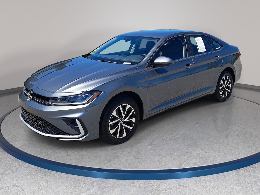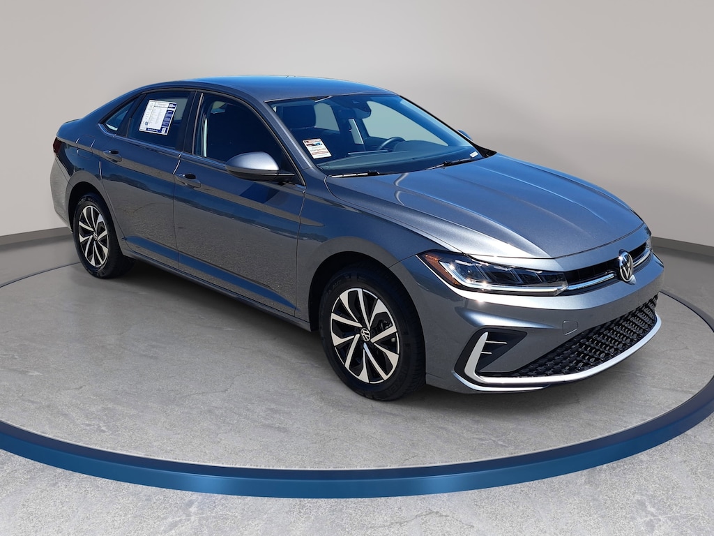 Platinum Gray Metallic 2025 Volkswagen Jetta 1.5T S FWD 8-Speed Automatic with Tiptronic 1.5L I-4 DI DOHC Turbocharged Titan Black w/Cloth Seat Trim, Active Blind Spot Monitor, Automatic temperature control, Brake assist, Electronic Stability Control, Exterior Parking Camera Rear, Front dual zone A/C, Fully automatic headlights, Radio: MIB3 Composition Color w/8" Touchscreen, Rain sensing wipers, Remote keyless entry, Speed-sensing steering, Steering wheel mounted audio controls, Traction control, Wheels: 16" 2-Tone Machined Alloy.